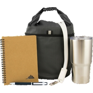 - Kit Includes: ALB - adventure lunch bag, CHIMP20 - double wall stainless tumbler, INTUITION - twist action matte pen, STONE - spiral stone paper notebook, 3IN1LANYARD - 3-in-1 USB charging cable.