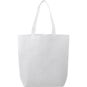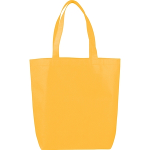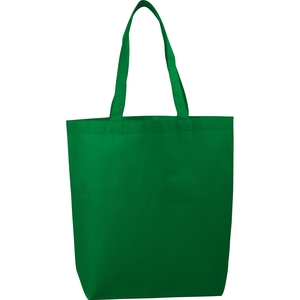 The Eros Non-Woven Tote has an open main compartment with double 20 inch handles. It's also reusable and a great alternative to plastic bags.