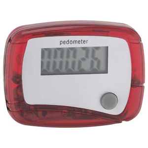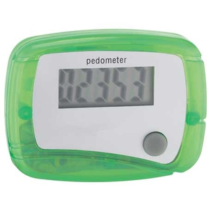 The In Shape Pedometer has an LCD display and counts steps. Comes with a belt clip and an auto-off power-saving function.