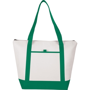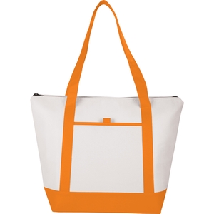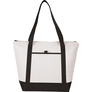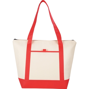 The Lighthouse 24-Can Non-Woven Boat Tote Cooler has a Zippered main compartment with double 24" handles. Open front pocket with pen loop. Foil lining.