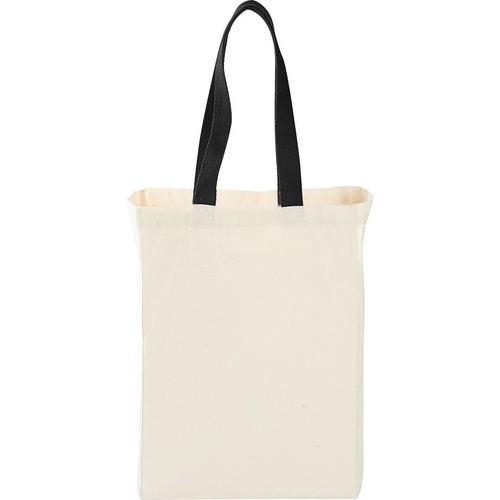 The Natural 5oz Cotton Canvas Grocery Tote has an open main compartment with 17.5" webbed handles.