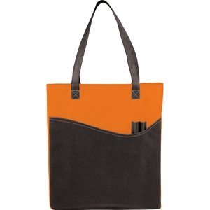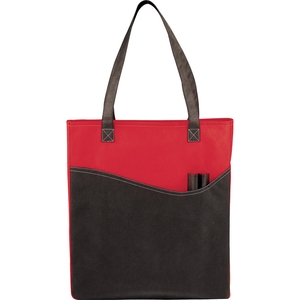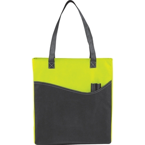 The Rivers Pocket Non-Woven Convention Tote has lots of storage including an open main compartment front pocket and two pen pockets. Great for tradeshows and conventions it's also reusable and comes with 26 inch handles. Gusset & Handle Decorating does not qualify for one day turn. Green with Black color is also available please contact us for more details.