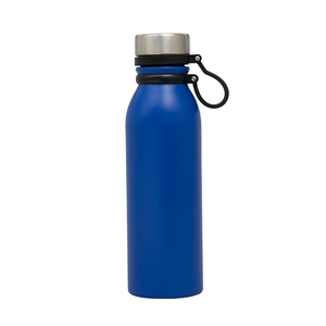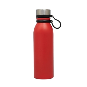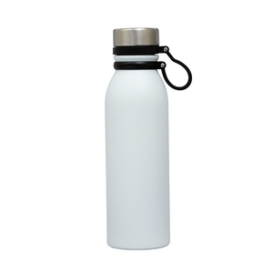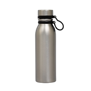 The Trek 20 oz. double wall stainless steel bottle has a sporty look and a beautiful power-coated finish. It has a steel-colored screw-top lid with a black silicone lid-tether strap that doubles as a carry handle. Take the Trek bottle on your next hike, run or camping excursion. It's easy to travel with and fits in most car cup holders. This bottle evenly distributes the temperature of your hot or cold drink as it has copper lining and is vacuum sealed. It maintains a comfortable exterior temperature so that you can hold your bottle while it keeps your cold drinks cold for 24 hours and your hot drinks hot for 12 hours. The Trek bottle is FDA compliant and BPA free.